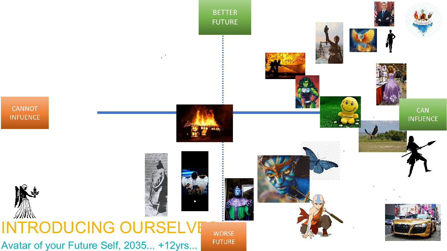 Our first experiment in the  Futures Literacy Lab was designed to explore futures orientations. South African youth were invited to share if they thought the futures would be better or worse, and choose an avatar that represents them in the year 2035. While they were split regarding if the world would be better or worse, a majority of South African youth felt they could influence the futures. Images included warriors or fighters, and birds such as a phoenix and an eagle.