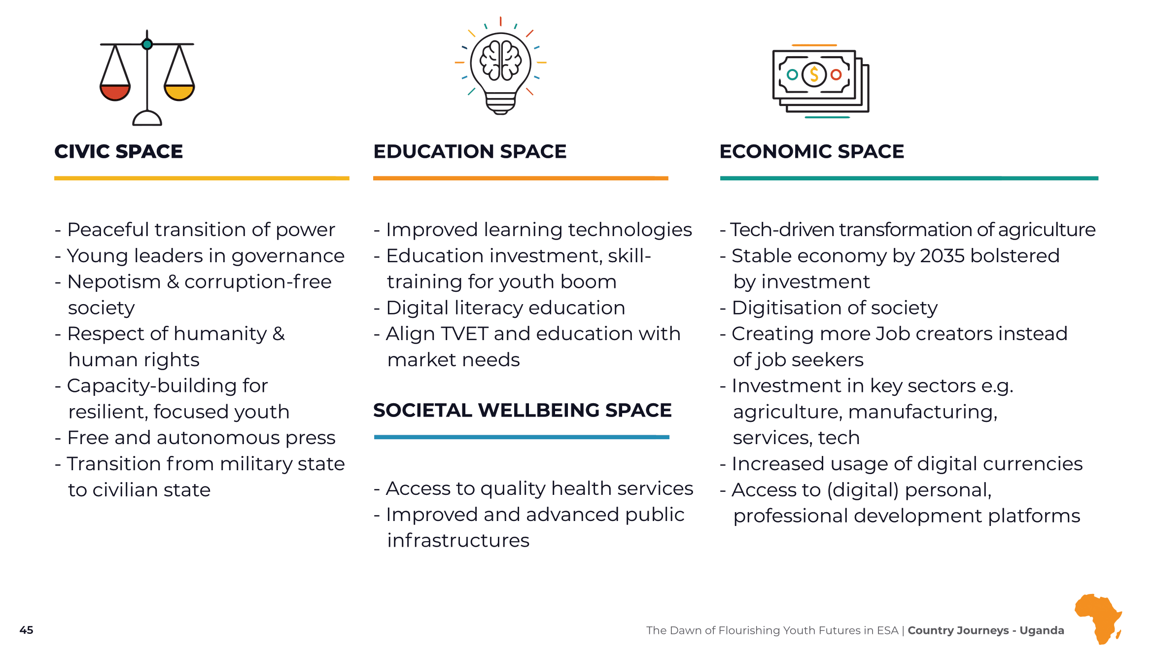 Young people in Uganda face huge economic, political and social challenges. According to the World Bank, while about 700,000 young people reach working age every year in the , on average only 75,000 jobs are created annually. This has resulted in cumulative frustration due to tough economic conditions and a feeling of missed opportunities to make it in life.